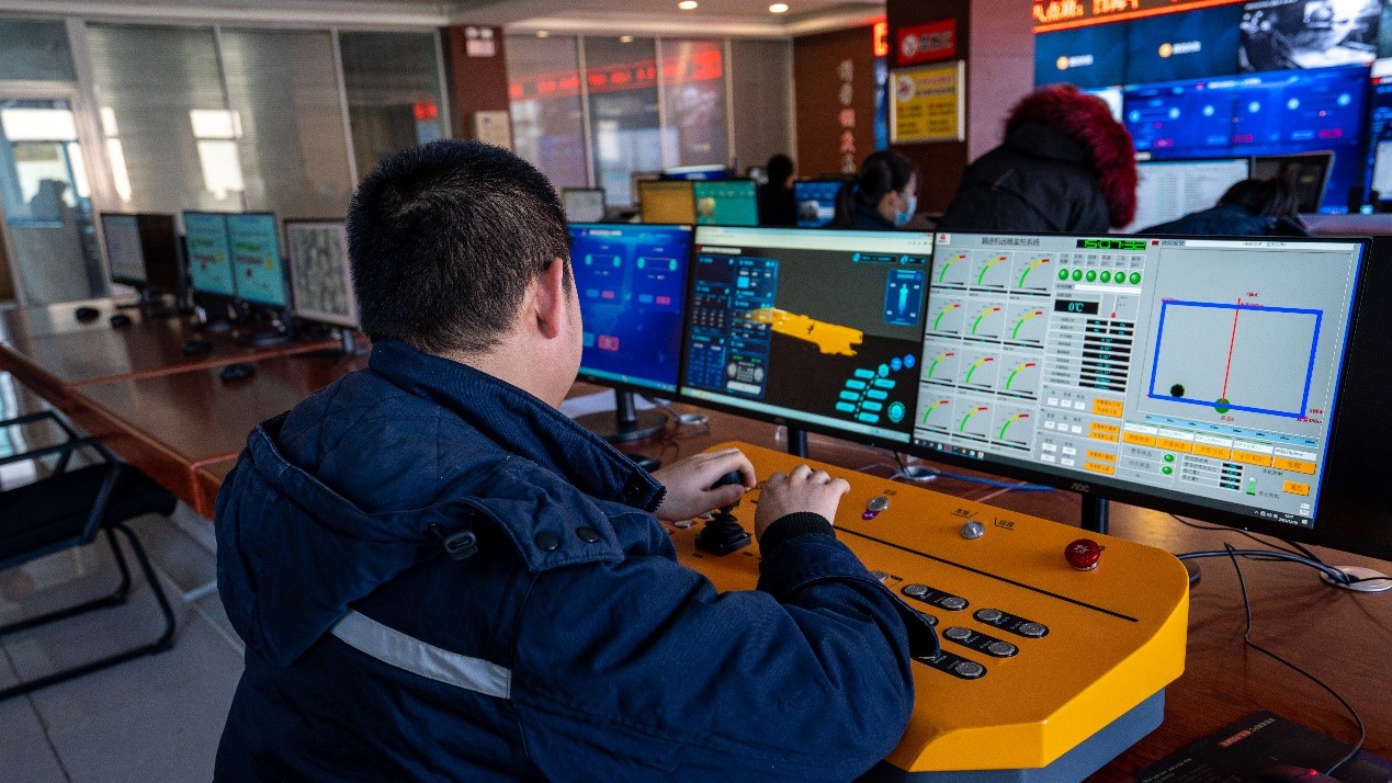 矿方人员使用井上操作台控制掘进机作业