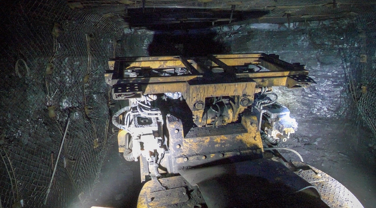 煤矿工人使用井下自动截割