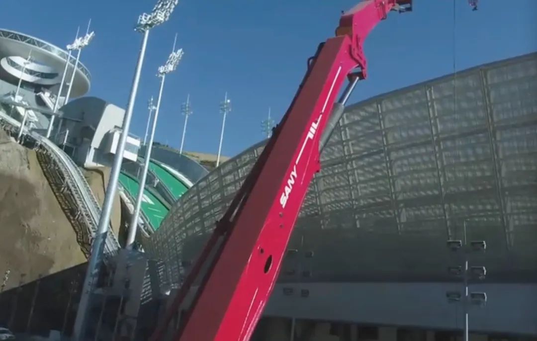 因跳台滑雪的比赛场地面积非常大,一般的摄像机很难拍摄到比赛场地全景,也很难抓拍到运动员在空中飞行时的特写。在国家体育总局相关部门的协调下,好体育综合app下载泵车应声“出战”,主动承担了此次奥运积分赛的拍摄任务。