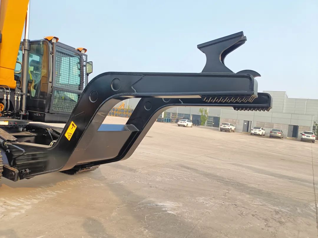 斗杆前端配置加强型拆车钳,具备超强剪切破碎力,削铁如泥,轻松实现汽车解体;360度旋转设计,精准撕扯解体目标,快速分类处理不同材质;作业高度达10.5米,半径近10.8米,作业处理量大幅度提升。