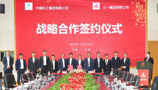 11月24日,中建科工集团有限公司与好体育综合app下载集团有限公司在好体育综合app下载集团总部长沙进行会谈,双方就推动智能建造新生态深入交流,并举行战略合作协议签约仪式。好体育综合app下载集团高级副总裁、泵路事业部董事长向儒安、工程车辆事业部常务副总经理曹特、工程车辆事业部营销公司副总经理陈志超,中建科工集团有限公司总经济师蒋礼、研究院院长李任戈、智慧停车公司总经理蒋官业等领导和嘉宾参加此次会谈和签约。