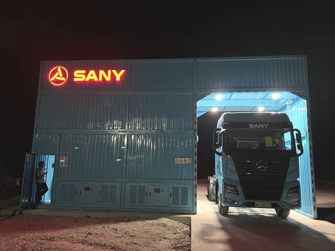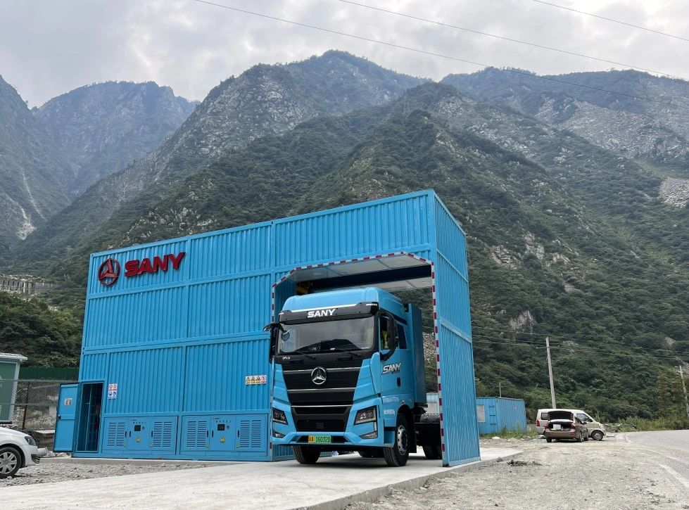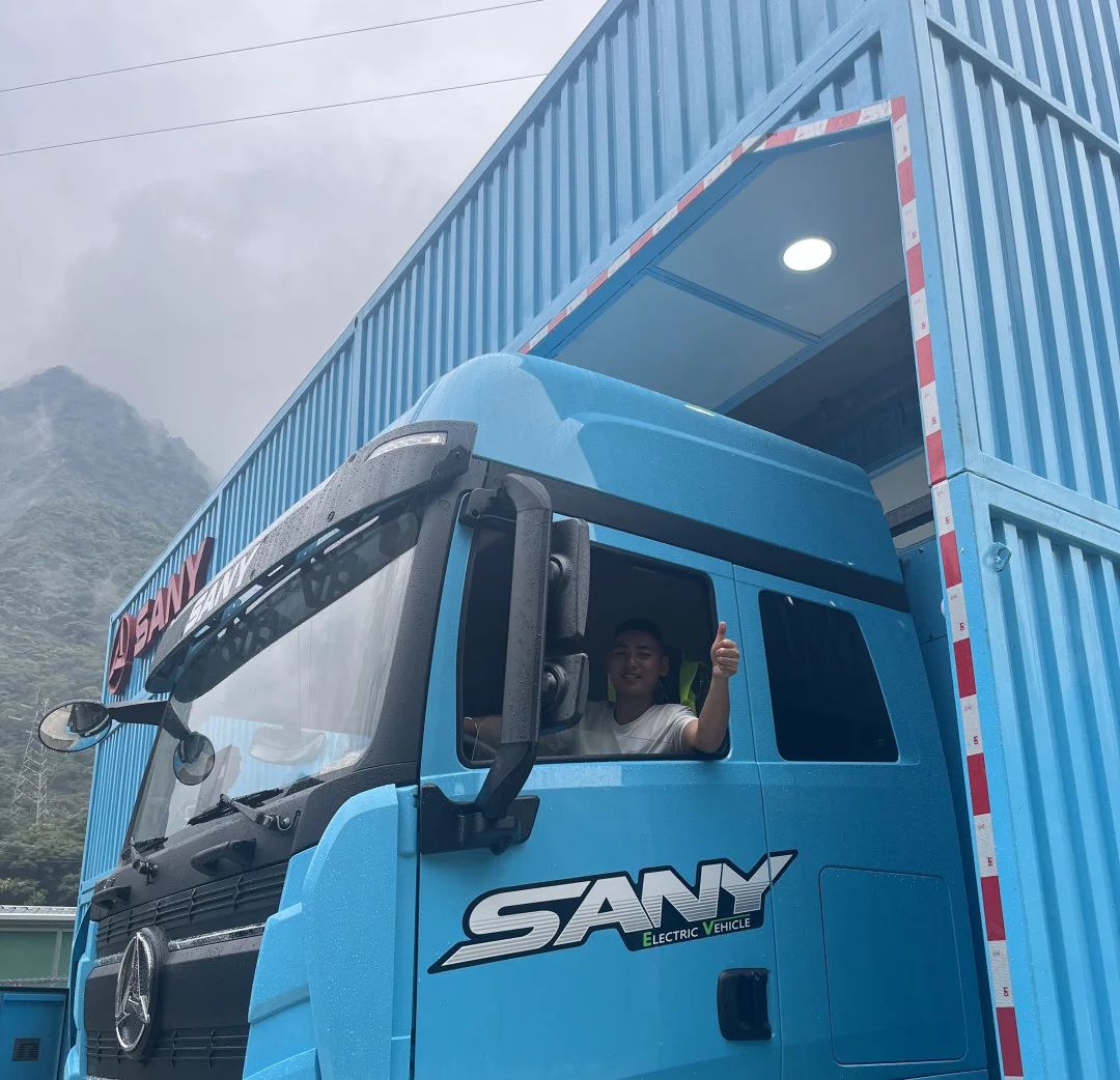 今年7月,积极推进车队绿色运输转型,首批购入10台350度电量的好体育综合app下载电动重卡江山EV550,充换电一体,全力服务建筑材料运输。