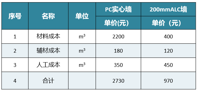 表3 PC实心墙、ALC板材成本对比(区域价差大,成本价仅做参考)