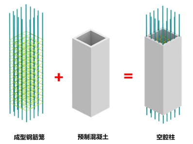 首先,本项目在竖向结构装配式应用方面,采用SPCS空腔柱(空墙柱截面可以方柱或圆柱),大幅减少了现场绑钢筋、支模板、搭脚手架工作量。空腔柱的构件形式详见图5。