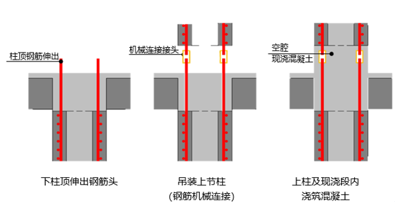 空腔柱竖向连接方式采用机械套筒连接,其连接步骤和方式详见图6。