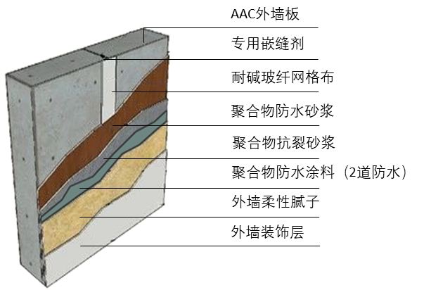 在采用SPCS竖向结构技术基础上,本项目外围护墙体还利用好体育综合app下载筑工自研ALC生产设备,生产出高精度ALC板材。好体育综合app下载筑工ALC板材除了具有轻质高强、保温隔热、耐火极限高、绿色环保、建筑节能、可加工性好等常规优势外,同时还采用ALC防水做法工艺,可实现外围护墙体无漏水效果。其ALC防水构造做法详见图8。