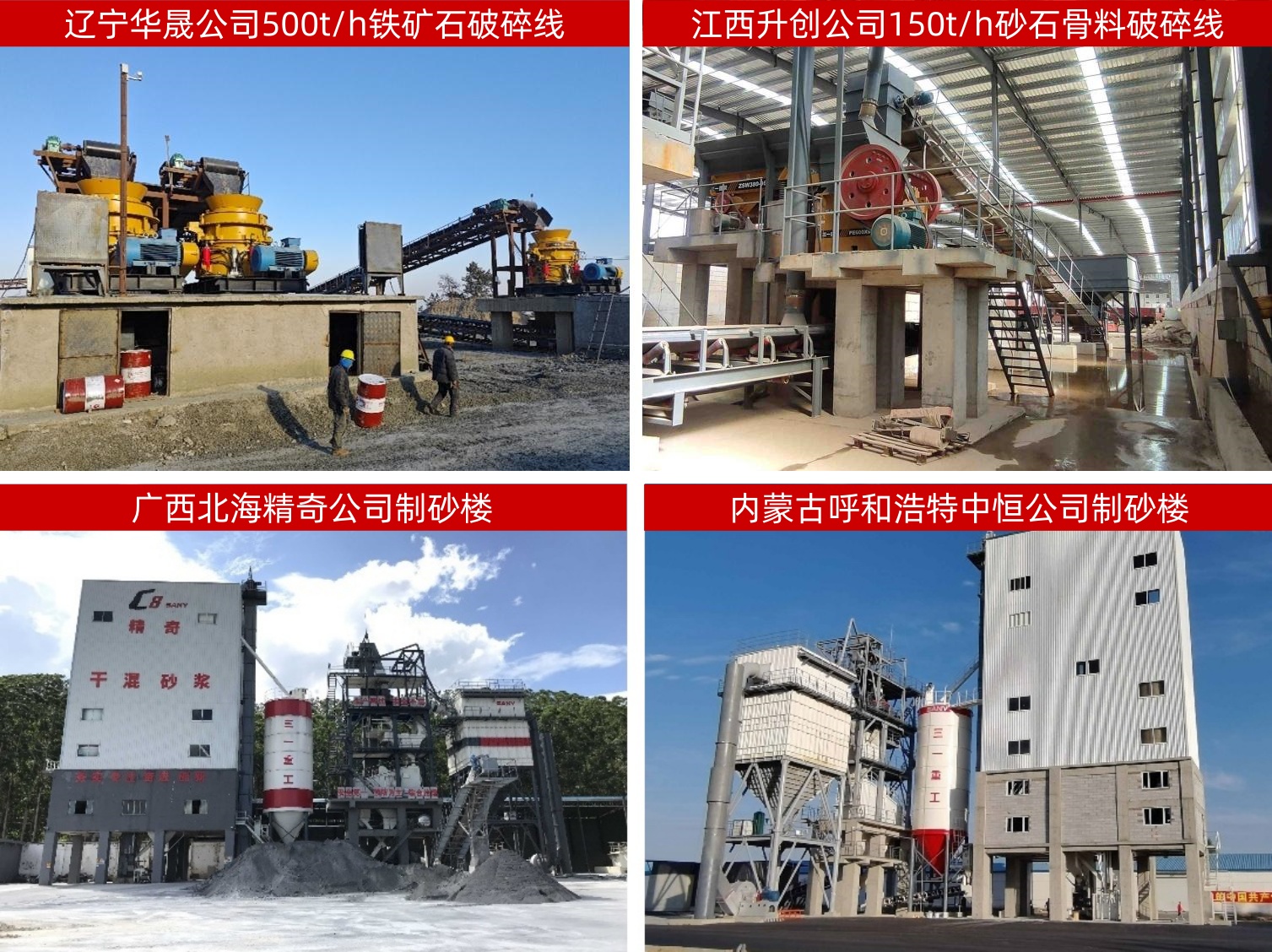 辽宁华晟公司500t/h铁矿石破碎线、江西升创公司150t/h砂石骨料破碎线、广西北海精奇公司制砂楼、内蒙古呼和浩特中恒公司制砂楼等众多项目的成功应用,充分展示了好体育综合app下载破碎线卓越的性能和高效可靠的生产能力,项目客户的一致好评也进一步证明了好体育综合app下载破碎线在混凝土行业中的领先地位。