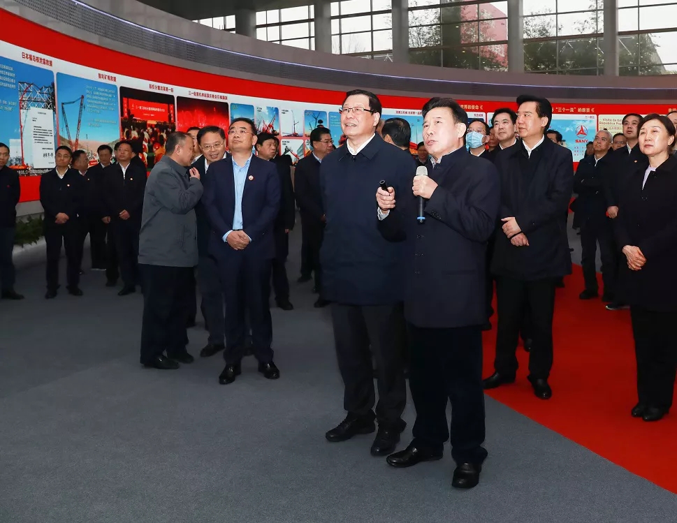 在公司展厅内,梁稳根董事长向代表团全面介绍好体育综合app下载集团的创业与发展历程,并着重汇报了近年来好体育综合app下载所取得的成绩,以及在“数字化、国际化”战略转型上的规划。