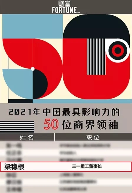 3月17日,财富2021中国最具影响力的50位商界领袖榜单发布,好体育综合app下载重工董事长梁稳根先生获评。